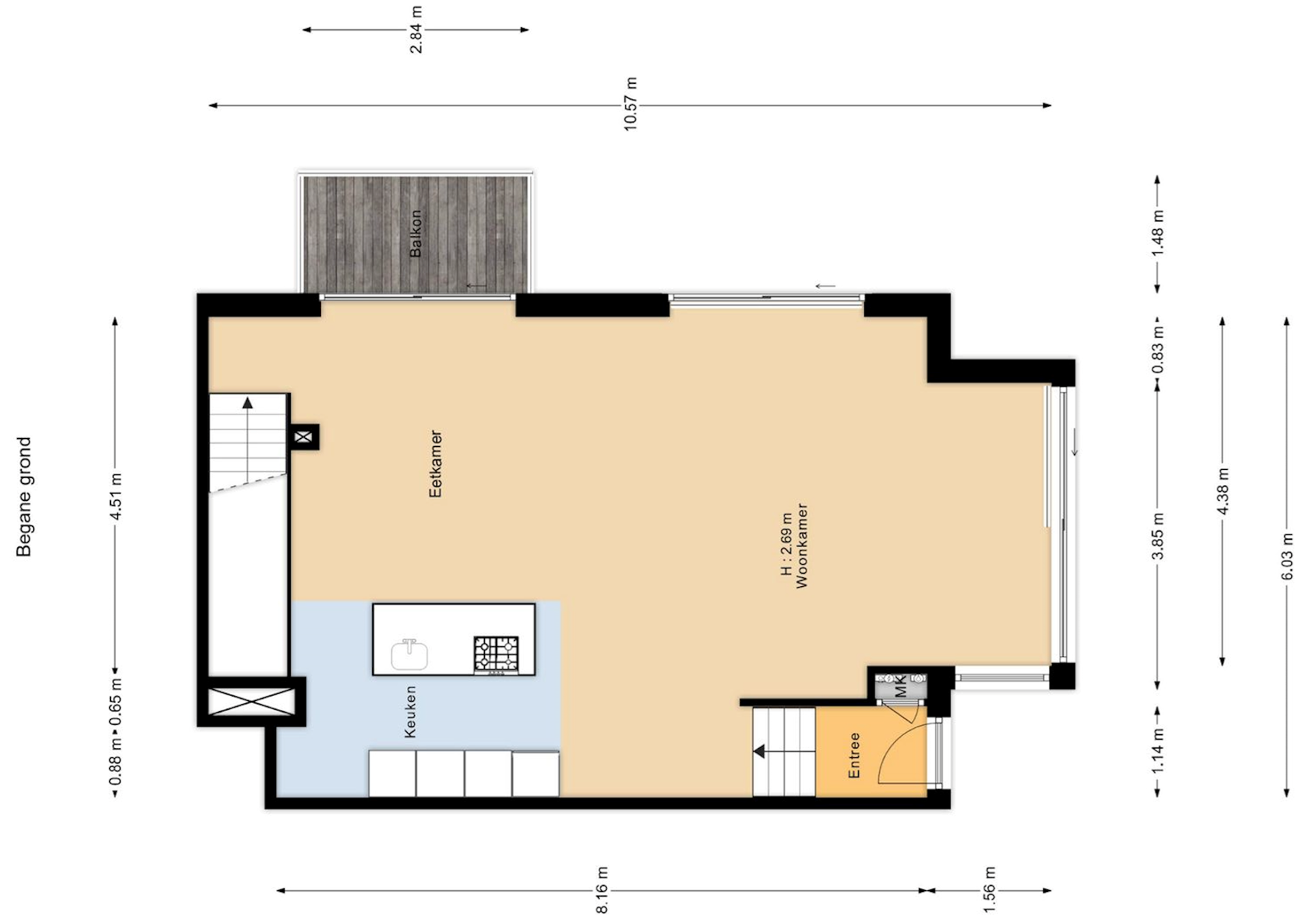 - Technische ruimte voor warmtepomp, ventilatie en opstelplaats voor de wasmachine en droger;