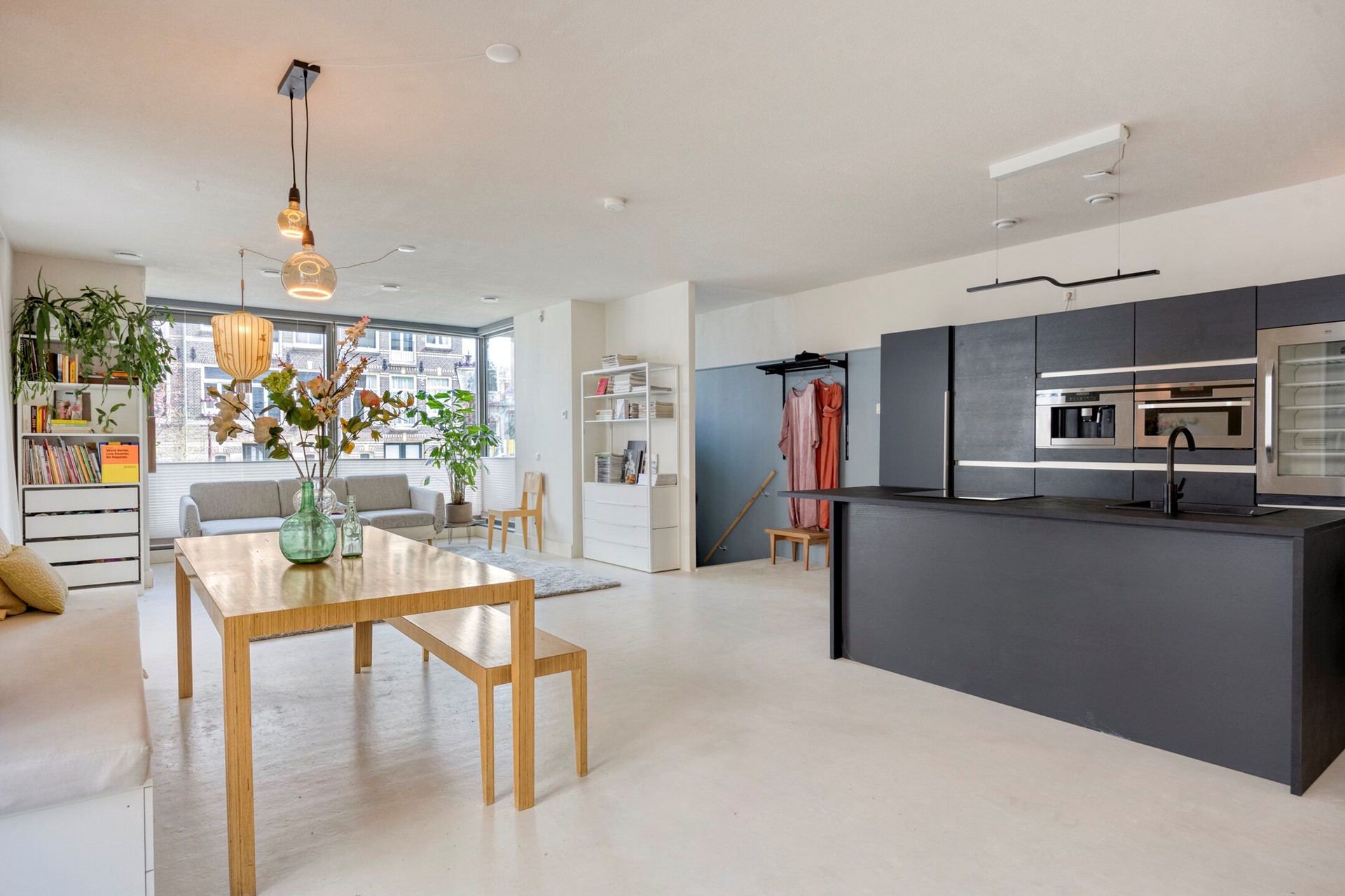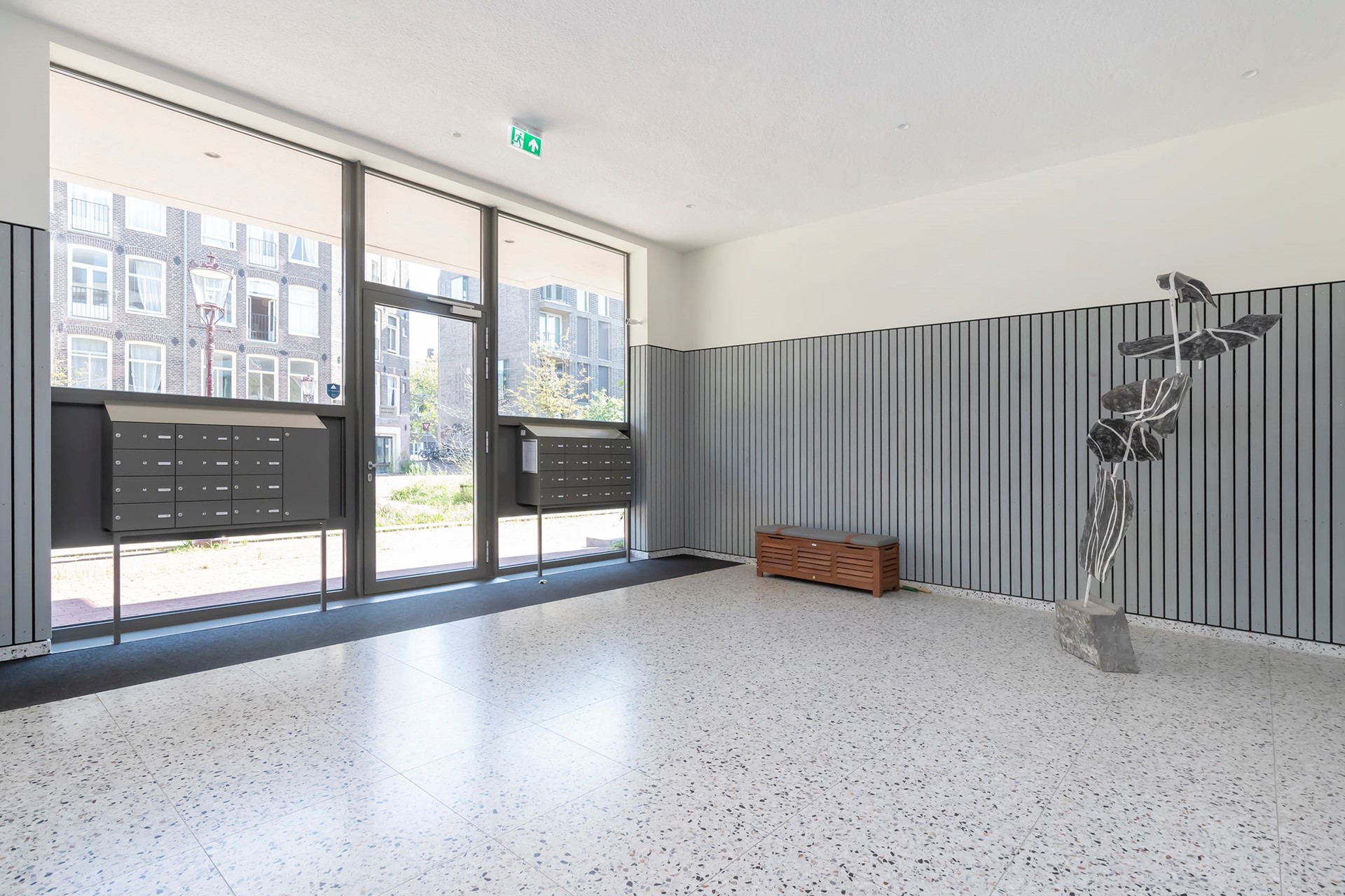 Dit moderne pand beschikt onder andere over een fietsenstalling en een gemeenschappelijk parkeergarage welke via de lift te bereiken zijn. Heel prettig: dit appartement heeft de beschikking over 2 externe bergingen. Op het dakterras bevindt zich het zeer unieke "roof-top" zwembad welke verwarmd wordt (April-Oktober) door de zonnepanelen die op een ander dak liggen. Op het dakterras is er een waanzinnige tuin met een prachtig weids uitzicht over Amsterdam en de Westerkerk! Tevens bevinden zich op de bovenste verdiepingen fitnessapparaten die gebruikt kunnen worden. De woning is gelegen aan de rand van de Jordaan. In de omgeving zijn vele gezellige restaurants, cafés en andere uitgaansmogelijkheden. Ook zijn (internationale) scholen, winkels en supermarkten op loopafstand. Nabij openbaar vervoer tramlijn 5,7,13 en 17. Om de hoek een directe bus naar Zandvoort aan zee, 30 minuten.