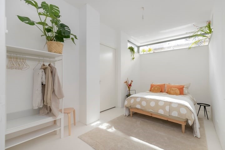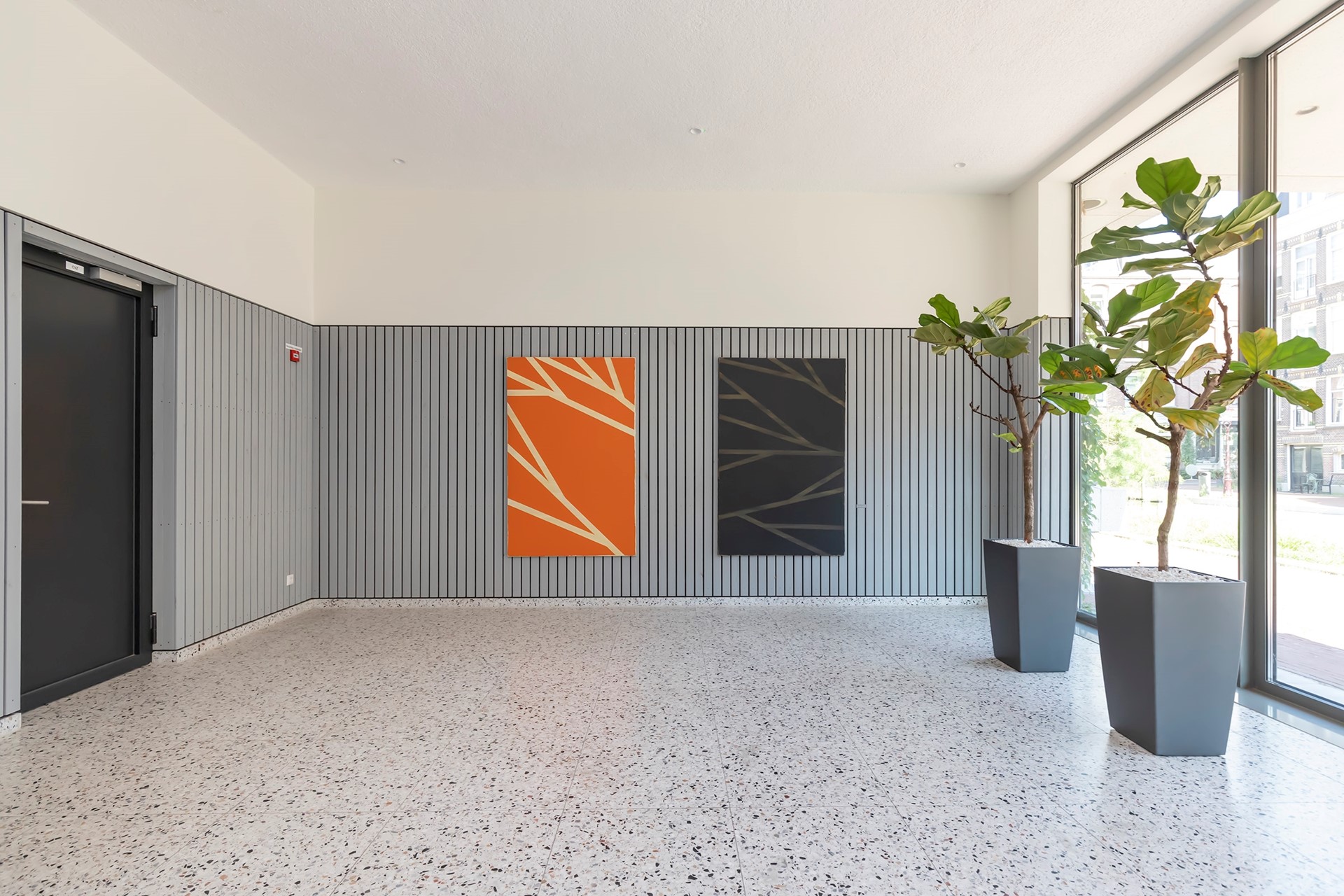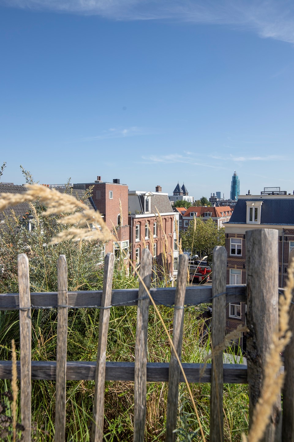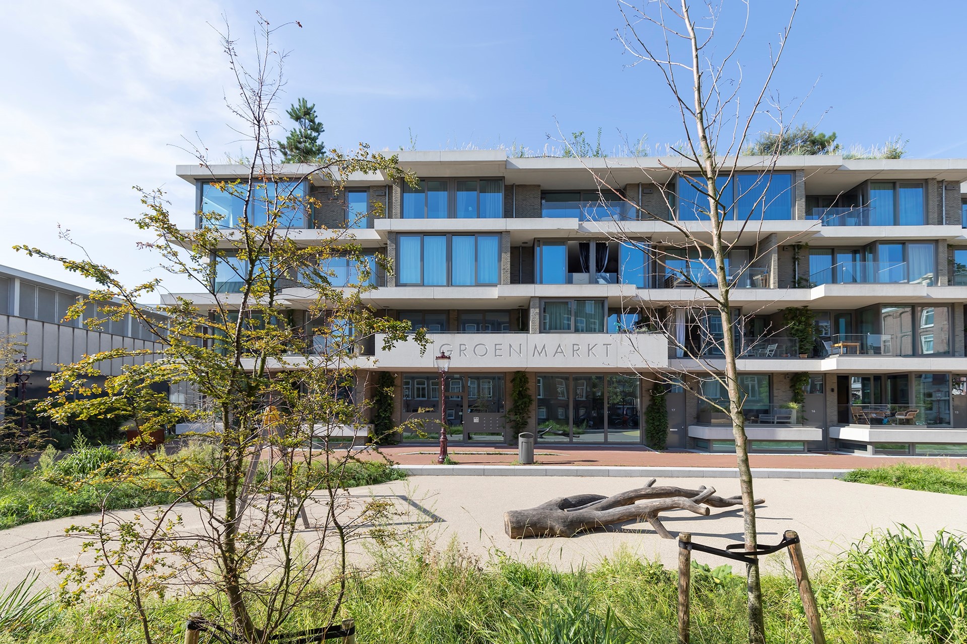 Groenmarkt. De naam zegt het al. Op deze mooie plek aan de Singelgracht kwamen vroeger – per boot – de groenten vanuit de polders de stad in gevaren. Spruiten, spitskool, witlof en prei! Alles 100% biologisch natuurlijk, want iets anders bestond nog helemaal niet. Supergezond. Architecten Bastiaan Jongerius en Ronald Janssen ontwierpen voor deze historische plek, samen met landschapsarchitect Harro de Jong, een nieuw Jordanees plein. Aan de Singelgracht een elegant, modern appartementengebouw met 35 appartementen inclusief 22 parkeerplaatsen in de ondergrondse garage en alle ruimte voor Moeder Natuur. Mooie terrassen met ‘doorgroeibare’ vloeren en plafonds, bijenhotels en zwaluwkastjes en dan op het dak – een spectaculair daklandschap met natuurzwembad, ‘strandhuis’ en gym voor alle bewoners.