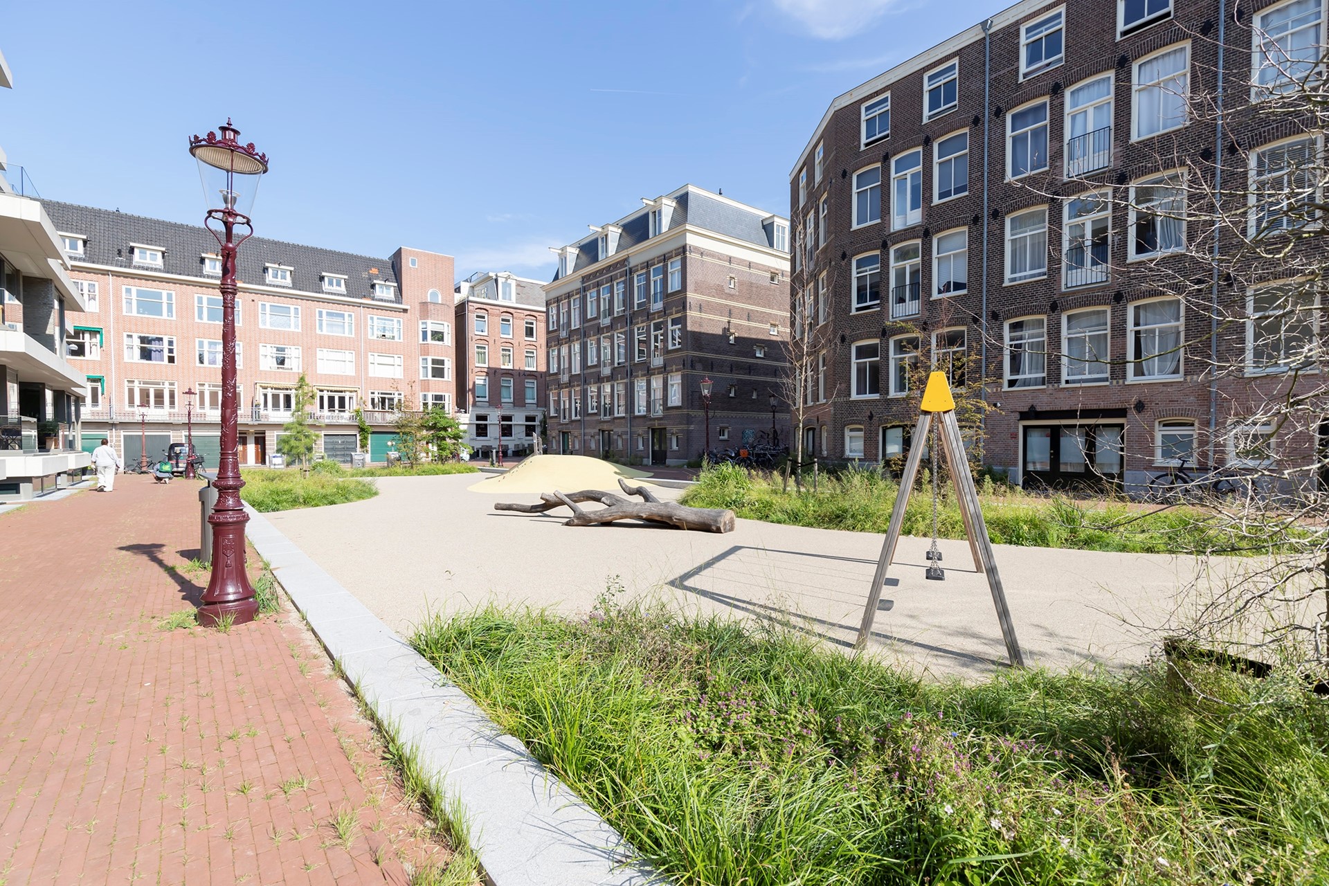 Dit 127 m2 ruim bemeten dubbellaags HOEKHUIS met 3 ruime slaapkamers op de beletage en souterrain aan de pleinzijde in het Prijswinnend Pand uit 2022 bieden wij te koop aan! Het appartement is zeer energiezuinig en heeft een eigen warmtepomp, vloerverwarming- en koeling, Geen gasaansluiting, lage energierekening. Lucht warmte terugwin- reinigings systeem en rookmelders aanwezig. Het appartement is voorzien van 3 ruime slaapkamers, 2 badkamers, woonkeuken met klimaatkast, ijskast, separate vriezer, inductiekookplaat, combi oven en afwasmachine. Omdat het een hoekwoning betreft is er veel licht inval. Dit zorgt voor een ruimtelijk effect. Aangrenzend aan de living is er via een schuifpui toegang tot de buitenruimte. Tevens is beneden een apart toilet met fontein en een wasruimte met wasmachine/droger aansluiting. En, heel speciaal; dit appartement heeft een eigen zelfstandige entree aan het plein. Door de mooie zichtlijnen ben je overal in contact met je omgeving. Als je kinderen hebt dan kunnen ze heerlijk spelen voor de deur. Een uniek plekje in Amsterdam. De erfpachtcanon bedraagt € 1.217,68 per jaar op basis van jaarlijkse indexering. De AB 2000 is van toepassing.